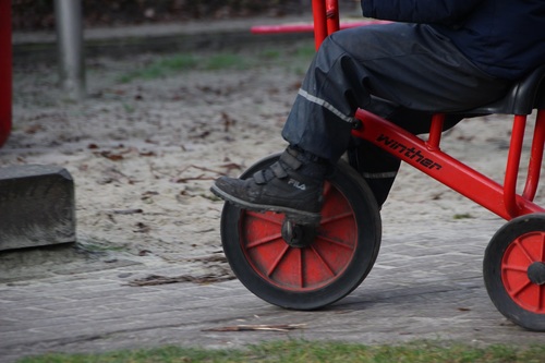 L.: „Dreirad mit Anhänger fahren, ganz schnell“