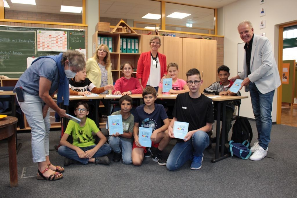 Herr May (Gemeindienstbeauftragter Rotary Club) kam in die Schule und hat gemeinsam mit Frau Döhner die Logbücher direkt an die Kinder verteilt (siehe Foto). In der pädagogischen Arbeit sind sie für Eltern, Lehrkräfte und Schülerinnen und Schüler eine gute Unterstützung, zum Beispiel beim Erlernen der Englischvokabeln und des Fingeralphabetes, beim Organisieren der Hausaufgaben oder beim schriftlichen Kontakt zu den Eltern.