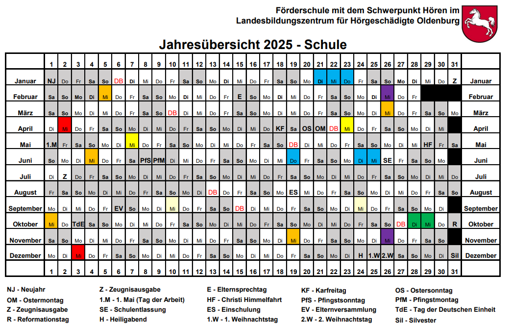Jahresübersicht Schule 2025